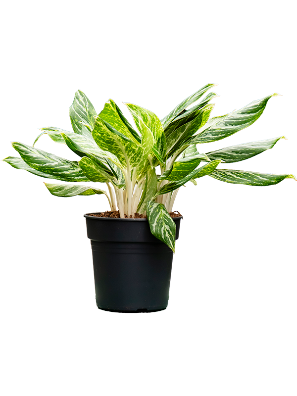 Die Aglaonema Madonna ist eine elegante Zimmerpflanze, die mit ihrem kompakten Wuchs und ihren glänzend grünen Blättern eine ruhige, natürliche Ausstrahlung hat. Ihre frische Blattfarbe und ihre raffinierte Form machen sie zu einem echten Stimmungsmacher im Haus. Mit einer Höhe von etwa 55 cm und einer Breite von 35 cm passt diese Pflanze perfekt auf einen Schrank, eine Kommode oder einen Beistelltisch, wo sie mühelos einen Hauch von lebendigem Grün hinzufügt.