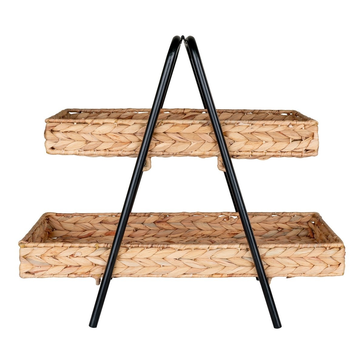 Dieses elegante und funktionale Tablett ist ideal, um Ihrem Zuhause einen Hauch von natürlicher Eleganz zu verleihen. Es besteht aus Wasserhyazinthe und Metall, verfügt über ein wunderschönes geflochtenes Design und einen stabilen Rahmen. Ideal zum Servieren von Snacks, Getränken oder zur Präsentation von Dekorationsartikeln.
