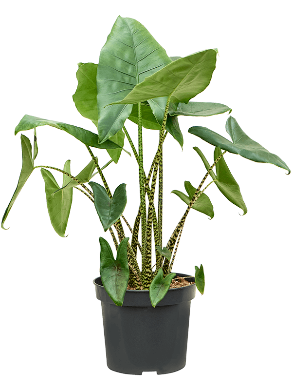 Die Alocasia Zebrina ist eine der außergewöhnlichsten Zimmerpflanzen, die es gibt. Ihren Namen verdankt sie ihren auffälligen Stielen mit Zebramuster – ein wunderschöner Kontrast zu den großen, frischen grünen Blättern in der charakteristischen Elefantenohrform. Mit einer Höhe von etwa 130 cm und einer Breite von 80 cm ist sie eine elegante Erscheinung, die jedem Interieur einen tropischen Akzent verleiht. Ob im Wohnzimmer, im Flur oder im Büro, die Alocasia Zebrina zieht immer die Aufmerksamkeit auf sich.