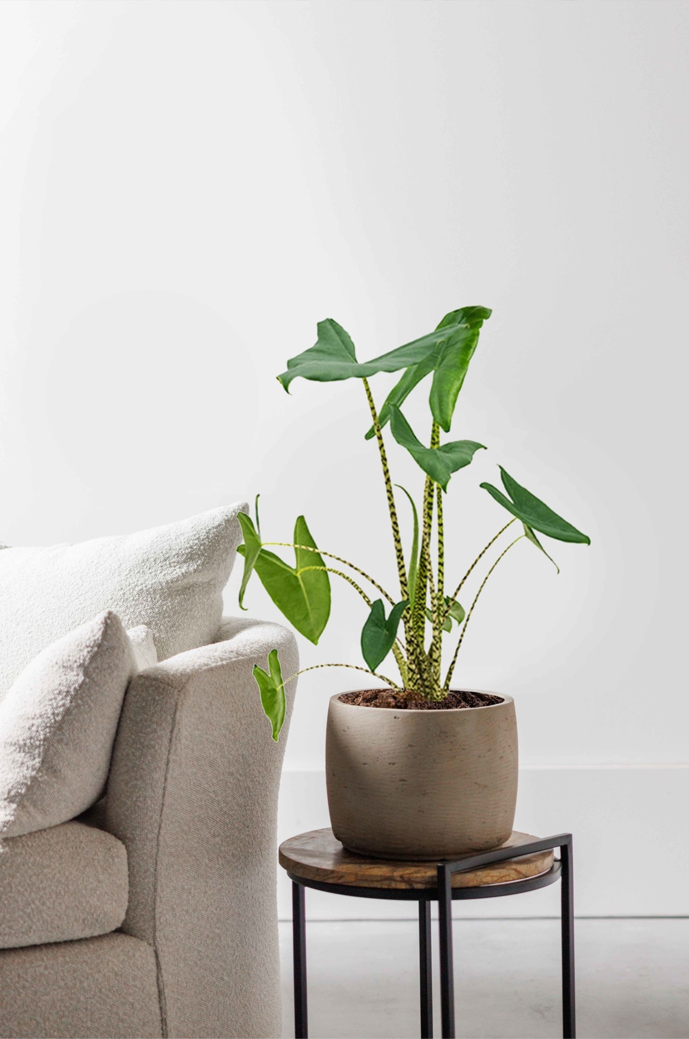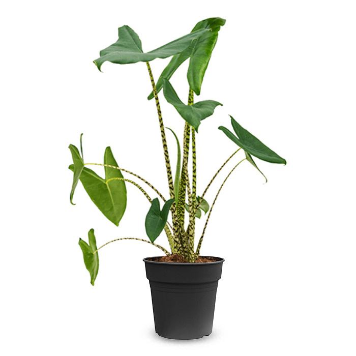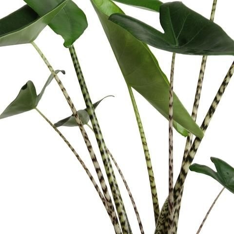 Die Alocasia ist eine Pflanze mit vielen verschiedenen Blattarten unter ihrem Namen. Die großen Blätter, die manchmal bis zu einem Meter lang werden können, werden auch Elefantenohren genannt. Ein echter Blickfang in Ihrer Einrichtung.