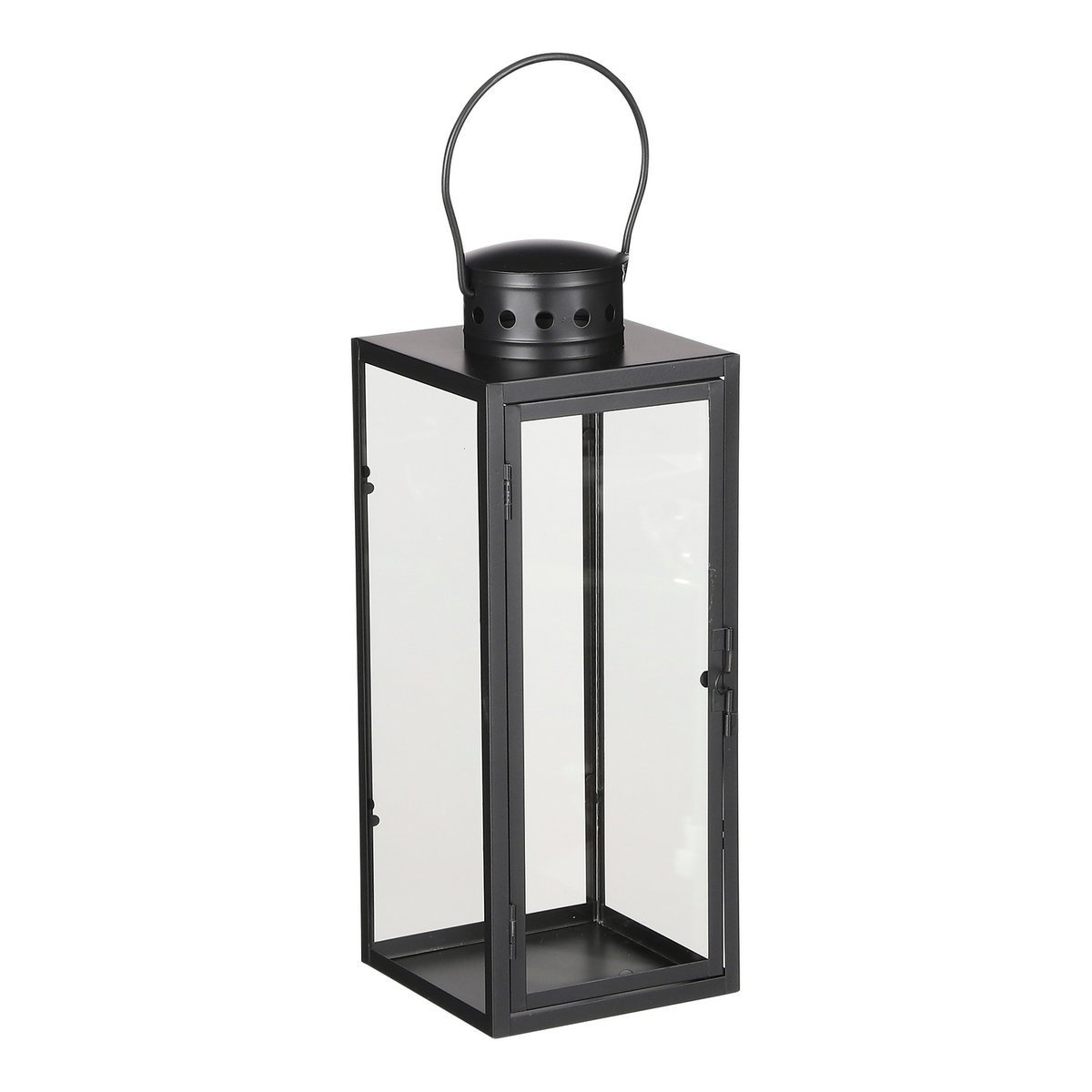 Die Arzilla Laterne von Mica Decorations verfügt über ein schlankes, modernes Design aus schwarzem Metall. Dank der großen, gläsernen Seiten können Sie das stimmungsvolle Kerzenlicht optimal genießen. Ideal für das Wohnzimmer. Die Laterne ist mit einer Tür ausgestattet und lässt sich durch den Griff leicht bewegen. Die Abmessungen betragen L13,5 x B13 x H34,5 cm.
