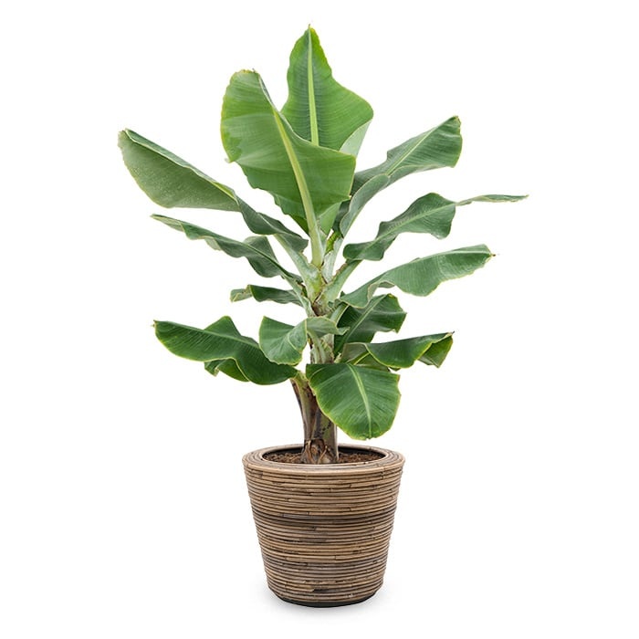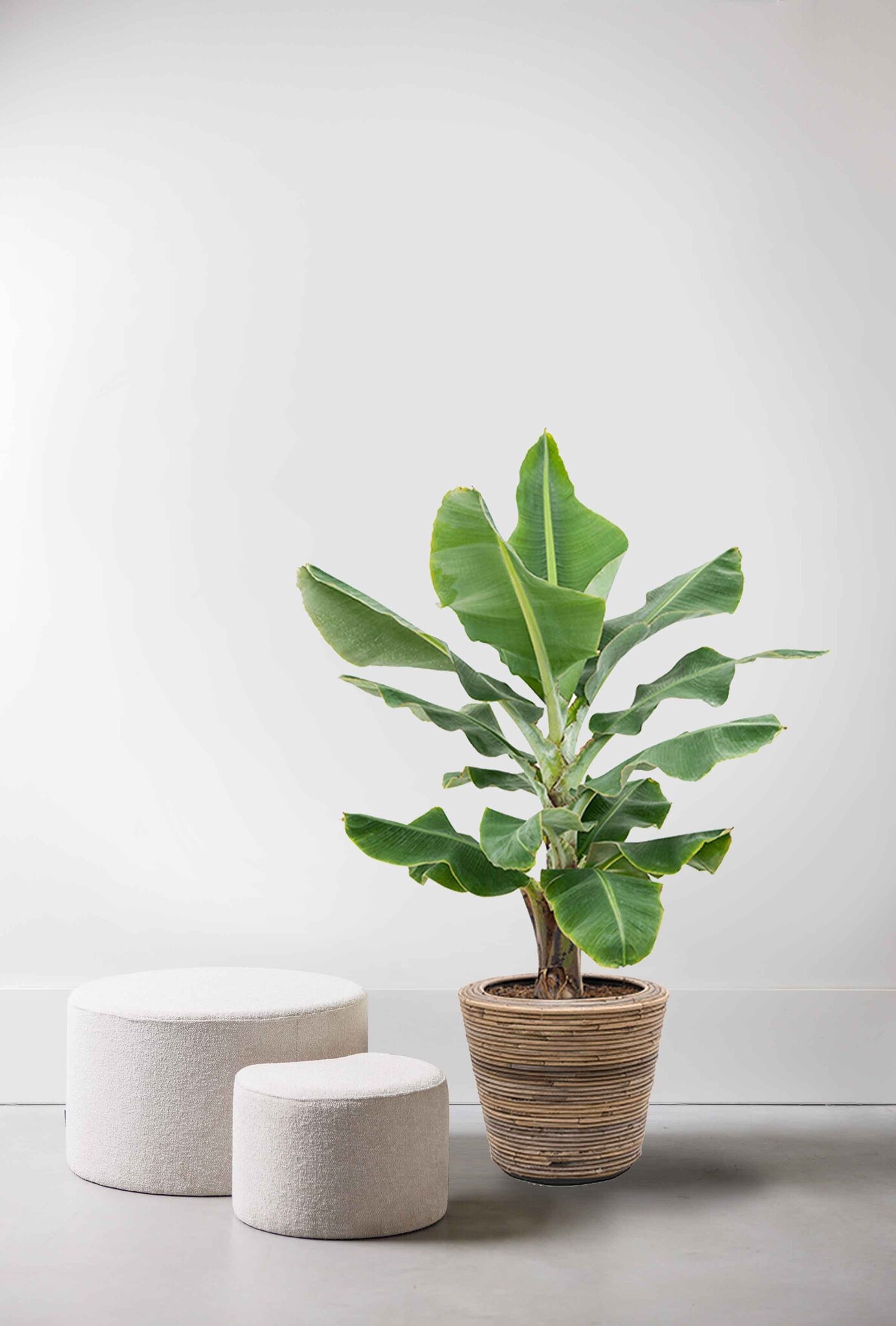 Diese tropische Zimmerpflanze stammt ursprünglich aus Asien. Die Bananenpflanze, auch Musa genannt, ist eine Pflanze, die perfekt in einen urbanen Dschungel passt. Die Bananenpflanze wächst schnell, und regelmäßig entstehen neue Pflänzchen im Topf. Diese können Sie in einen eigenen Topf umpflanzen und weiterwachsen lassen.