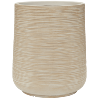 Die Dune-Kollektion hat eine wunderschöne Oberflächenstruktur, die an die dynamischen Linien von vom Wind verwehten Sanddünen erinnert. Die Pflanzgefäße sind aus leichtem Fibreclay gefertigt und lassen sich leicht bewegen. Da sie UV-beständig sind und ein Entwässerungsloch haben, können die Pflanzgefäße problemlos im Freien aufgestellt werden. Wenn Sie sie im Innenbereich verwenden, sollten Sie einen Überzug verwenden.