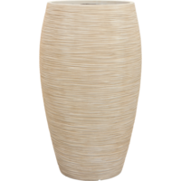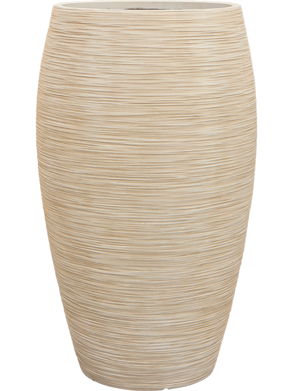 Die Dune-Kollektion hat eine wunderschöne Oberflächenstruktur, die an die dynamischen Linien von vom Wind verwehten Sanddünen erinnert. Die Pflanzgefäße sind aus leichtem Fibreclay gefertigt und lassen sich leicht bewegen. Da sie UV-beständig sind und ein Entwässerungsloch haben, können die Pflanzgefäße problemlos im Freien aufgestellt werden. Wenn Sie sie im Innenbereich verwenden, sollten Sie einen Überzug verwenden.