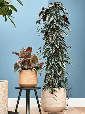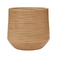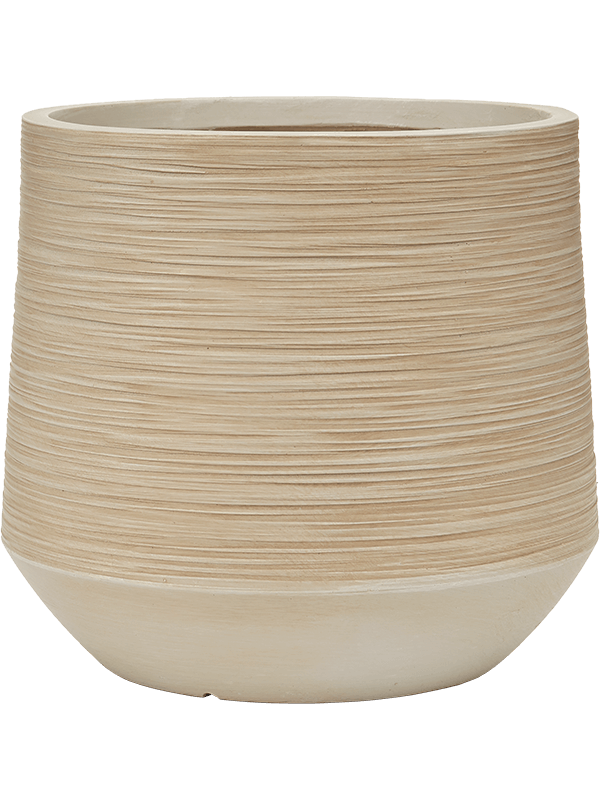 Die Dune-Kollektion hat eine wunderschöne Oberflächenstruktur, die an die dynamischen Linien von vom Wind verwehten Sanddünen erinnert. Diese Pflanzgefäße aus leichtem Fibreclay sind leicht zu transportieren. Da sie UV-beständig sind und ein Entwässerungsloch haben, können die Pflanzgefäße problemlos im Freien aufgestellt werden. Wenn Sie sie im Innenbereich verwenden, sollten Sie eine Abdeckung verwenden.