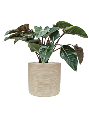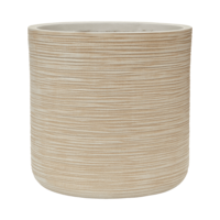 Die Dune-Kollektion hat eine schöne Oberflächenstruktur, die an die dynamischen Linien von vom Wind verwehten Sanddünen erinnert. Die Pflanzgefäße sind aus leichtem Fibreclay gefertigt und lassen sich leicht bewegen. Da sie UV-beständig sind und ein Entwässerungsloch haben, können die Pflanzgefäße problemlos im Freien aufgestellt werden. Wenn Sie sie im Innenbereich verwenden, sollten Sie eine Abdeckung verwenden.