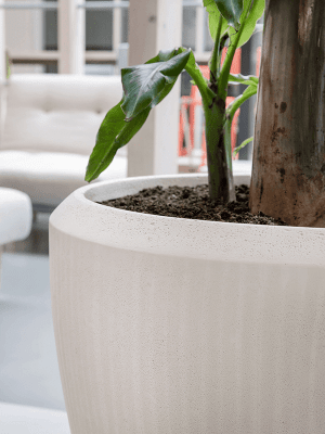 Onze basis opmaak bestaat uit semi hydro, dat betekent dat wij vanaf een potmaat van 20 centimeter en groter, de planten rondom de kwekersaarde afstrooien met hydrokorrels. Hierbij heeft u als extra keuze om een watermeter toe te voegen en of u de bovenkant van de pot wilt laten afstrooien met houtsnippers.