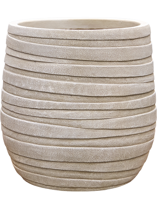 Das Baq Pflanzgefäß aus der Tornado-Kollektion hat eine besondere Oberflächenstruktur mit gewellten Linien. Dieses Pflanzgefäß ist aus Fiberclay, einer Mischung aus Glasfaser und Ton, hergestellt. Dieses Material hat das Aussehen von Stein, ist aber um ein Vielfaches leichter. Die gerippte Struktur dieses Pflanzgefäßes verleiht ihm einen modernen Look.