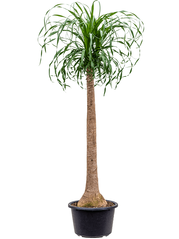 Beaucarnea, auch bekannt als Elefantenfuß, hat ein auffälliges Aussehen. Die große Knolle an der Basis des Stammes sorgt nicht nur für den Charakter, sondern auch für den Spitznamen! Wie ein Kamel speichert die Beaucarnea Wasser in ihrem Stamm und ist damit eine Pflanze, die ziemlich lange ohne Wasser auskommen kann. Sie ist pflegeleicht und ideal für das Wohnzimmer oder das Büro.