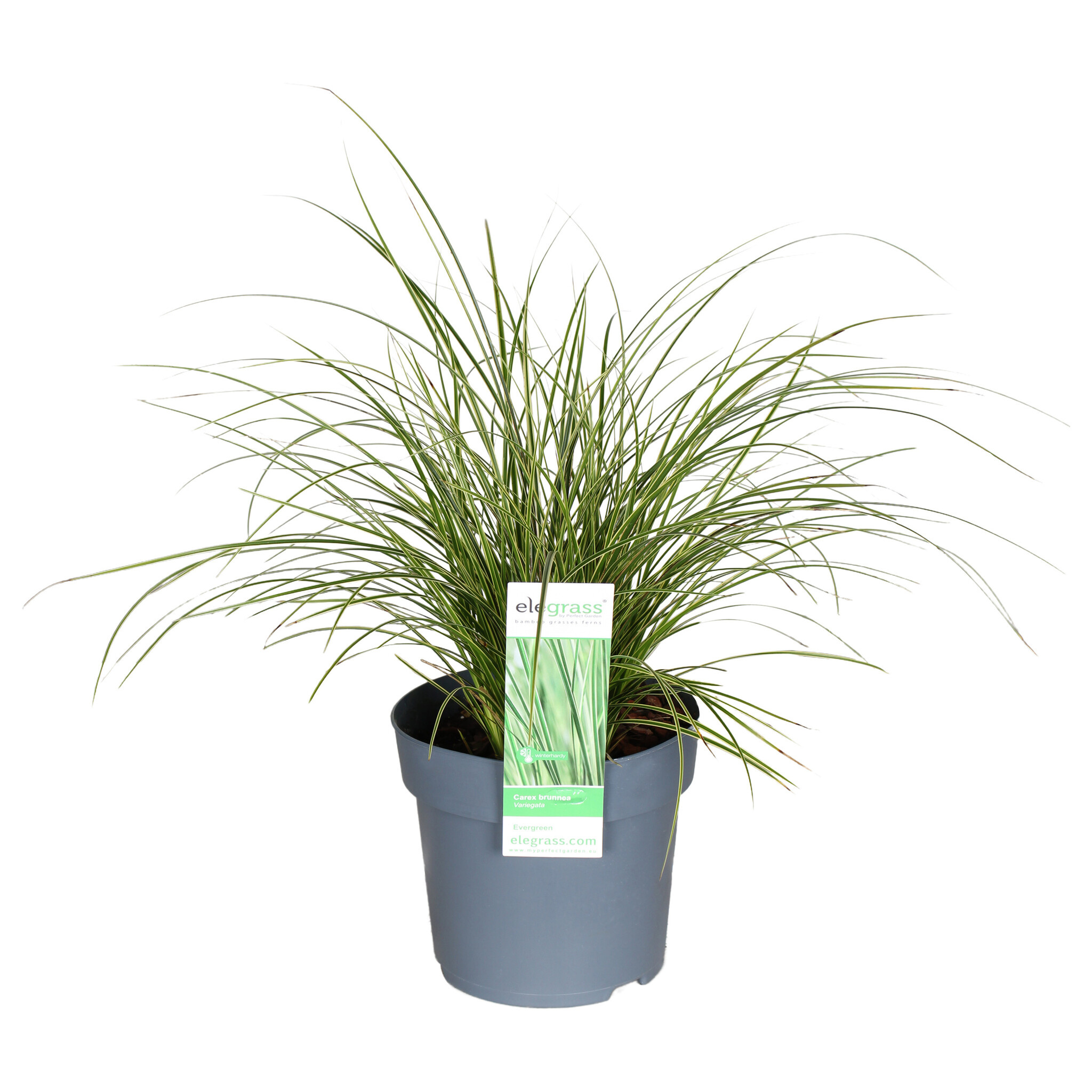 Carex morrowii Variegata, auch bekannt als Segge, ist ein robustes und immergrünes Ziergras, das sich hervorragend als Bodendecker oder in einem Pflanzkübel eignet. Die schräg nach oben wachsenden Blätter sind in der Mitte grün und an den Rändern cremeweiß. Diese Gartenpflanze fühlt sich sowohl in der Sonne als auch im Schatten wohl. Die Einsatzmöglichkeiten dieses Ziergrases sind vielfältig. Es verleiht der Rabatte Farbe, wenn es in kleinen Gruppen gepflanzt wird, und kommt mit mehreren Pflanzen am besten zur Geltung. Im Winter bleiben die Blätter grün. Im Frühjahr erscheinen an der Pflanze hellgelbe Stängel mit braunen Blütenähren. Die Carex ist äußerst pflegeleicht. Ein Rückschnitt ist nur erforderlich, wenn die Pflanze verwelkte Blätter hat, und sollte am besten im frühen Frühjahr erfolgen, damit sie wieder ein frisches Aussehen erhält.