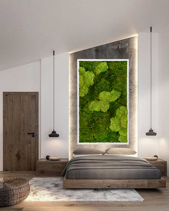 Dieses einzigartige, mit Moos bedeckte grüne Gemälde ist eine Augenweide. Darüber hinaus erfordert es, wie ein gewöhnliches Gemälde, nach dem Aufhängen keinen weiteren Aufwand. Sie müssen das Gemälde nicht befeuchten, da es mit mumifiziertem Moos bedeckt ist. Es handelt sich um echtes, natürliches Moos, dessen Feuchtigkeit durch eine umweltfreundliche und biologisch abbaubare Präparationsflüssigkeit ersetzt wurde. Indem das Moos diese Flüssigkeit aufnimmt, bleibt es lange Zeit erhalten und behält sein natürliches Aussehen und seine Farbe.