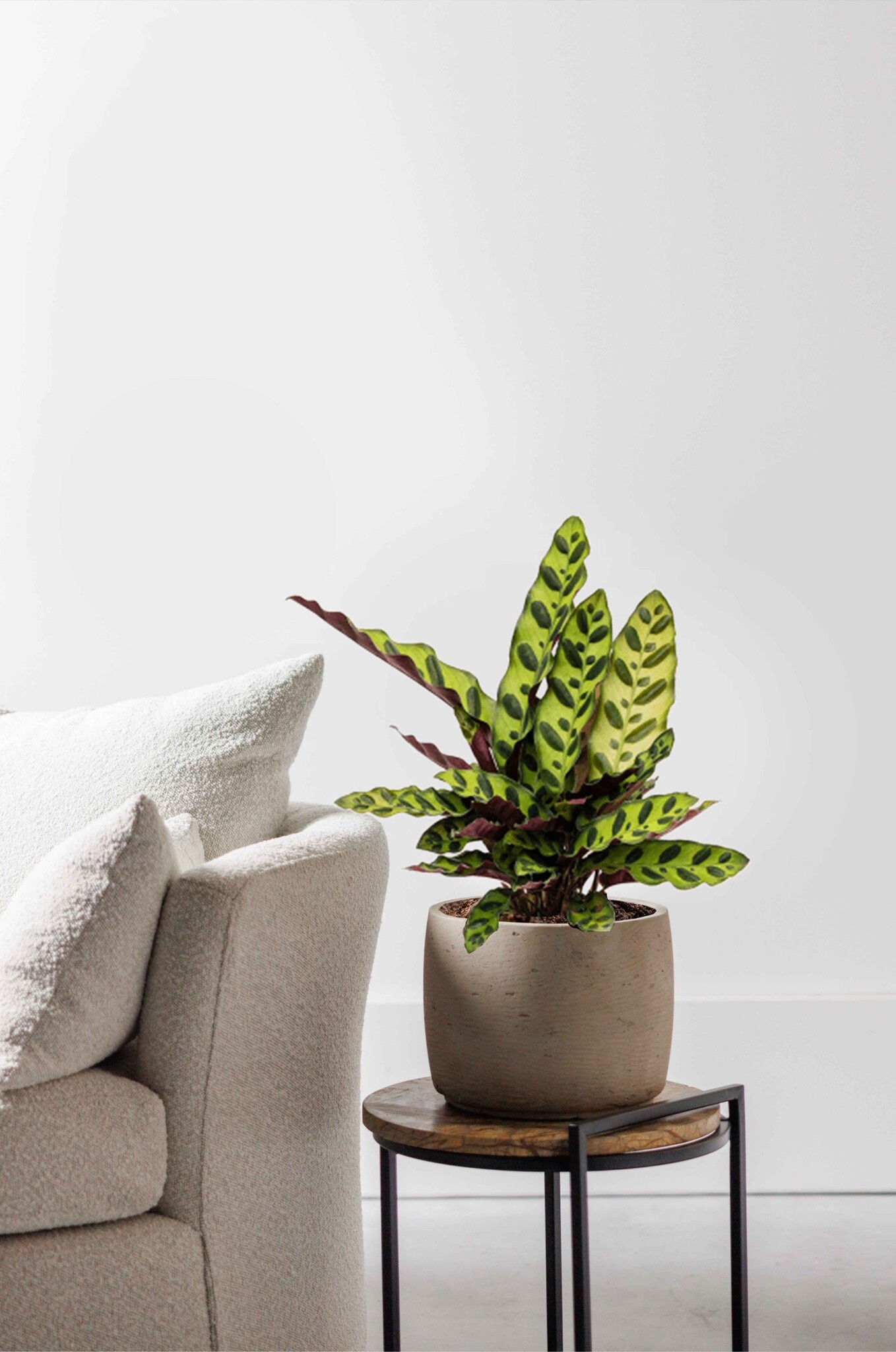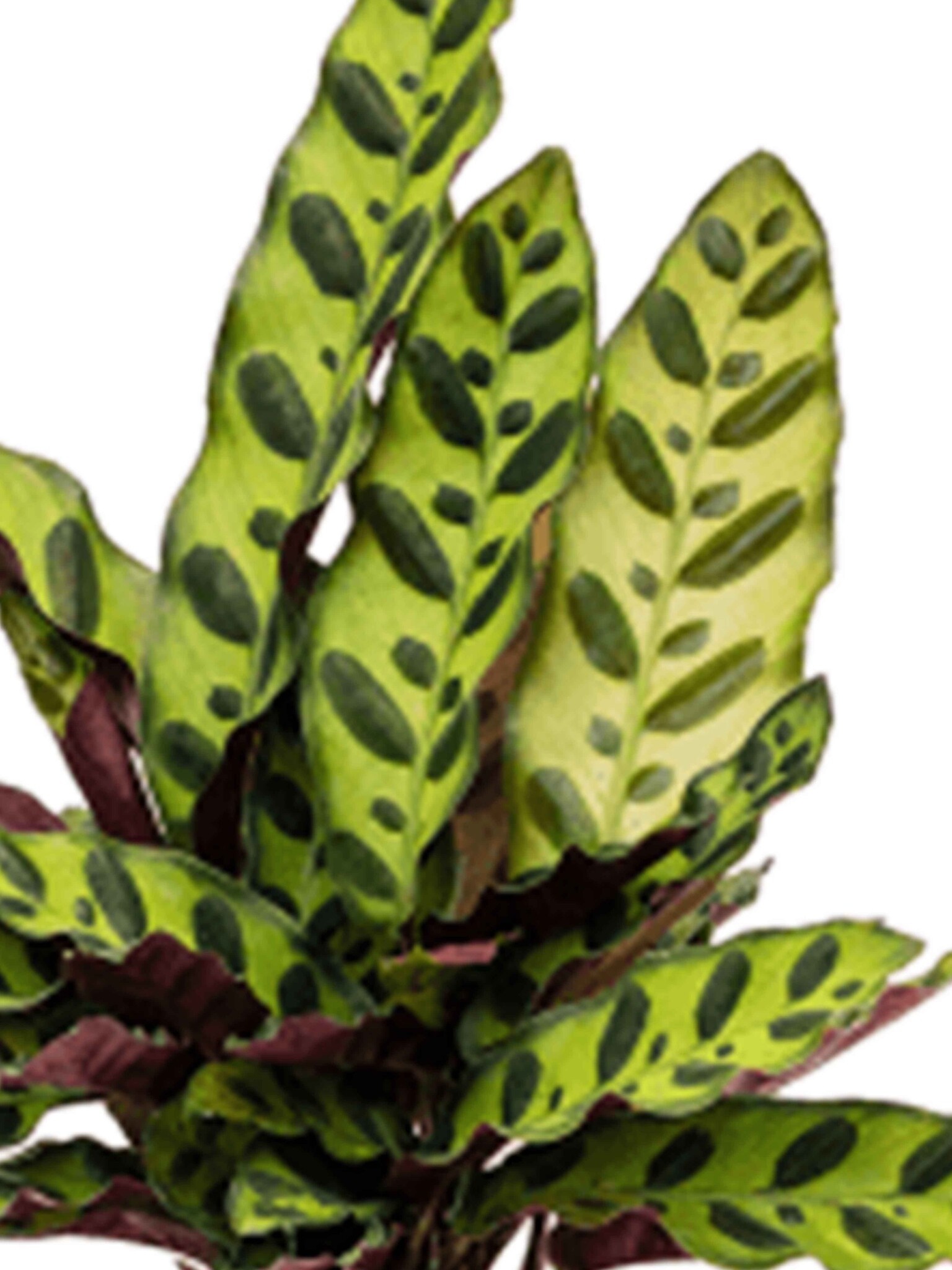 Die Calathea ist bekannt für ihre auffälligen gestreiften und bunten Blätter. Die schönen Muster auf den Blättern sorgen für einen besonderen und auffälligen Look. Wenn Sie etwas Besonderes in Ihrem Zuhause schätzen, ist die Calathea eine gute Wahl. Diese Pflanze passt nicht nur gut in jedes Interieur, sondern reinigt auch die Luft. Seien Sie bitte nicht überrascht, wenn die Pflanze gegen Abend eine andere Haltung einnimmt. Die Blätter schließen sich nämlich gegen Abend.