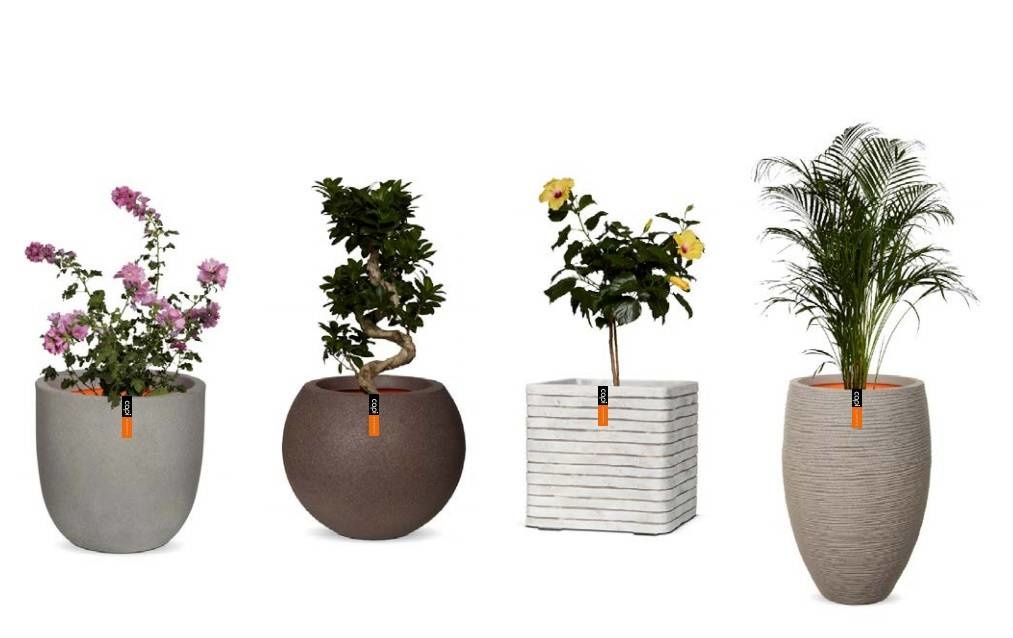 Unsere Grundausstattung besteht aus Semi-Hydro, das heißt, dass wir ab einer Topfgröße von 20 Zentimetern die Pflanzen rund um die Anzuchterde mit Hydrokörnern bestreuen. Zusätzlich können Sie einen Wasserzähler einbauen und entscheiden, ob Sie die Oberseite des Topfes mit Holzspänen bestreuen möchten.