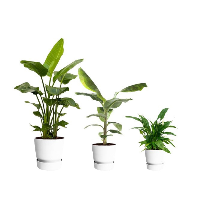 Diese tropische Zimmerpflanze stammt ursprünglich aus Asien. Die Bananenpflanze, auch Musa genannt, ist eine Pflanze, die perfekt in einen urbanen Dschungel passt. Die Bananenpflanze wächst schnell, und regelmäßig entstehen neue Pflänzchen im Topf. Diese können Sie in einen eigenen Topf umpflanzen und weiterwachsen lassen.
