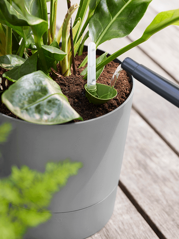 Mit der Greensense Aqua Care können Sie sicherstellen, dass Ihre Pflanzen immer genug Wasser haben. Sie füllen den Wassertank auf, wenn die Wasseruhr es anzeigt, und schon können Sie Ihre Lieblingspflanzen genießen! Dieser Topf wird mit einem Stecker geliefert, so dass Sie ihn sowohl drinnen als auch draußen verwenden können. Und dank der integrierten Räder lässt sich der Topf leicht bewegen. Sie können sich darauf verlassen, dass dieser Topf mit Liebe zur Natur hergestellt wurde. Er besteht zum Beispiel aus recyceltem Kunststoff, wird mit Windenergie aus unserem eigenen Windrad hergestellt und ist außerdem vollständig recycelbar. Die greensense aqua care Töpfe haben ein einfaches Wassersystem mit einem 2,8 Liter fassenden Reservoir. Der Wasserzähler zeigt genau an, wann das Wasser nachgefüllt werden muss. Ihre Pflanze verbraucht das gespeicherte Wasser automatisch, wenn es gebraucht wird. Ideal für einen heißen Sommer oder wenn Sie in den Urlaub fahren.