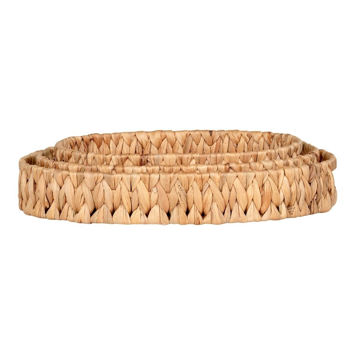 Dieses Set aus drei Estoril-Tabletts bietet eine natürliche und vielseitige Möglichkeit, Gegenstände in Ihrem Zuhause zu organisieren und zu präsentieren. Diese ovalen Tabletts sind aus gewebtem Wasserhyazinthen hergestellt und in drei verschiedenen Größen erhältlich, wodurch sie jedem Raum einen Hauch von rustikalem Charme und Struktur verleihen.