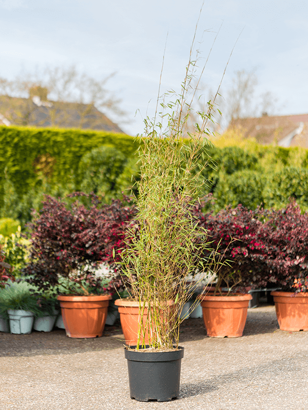 Fargesia Jiuzhaigou ist ein Zierbambus, der für seinen verzweigten, aufrechten Wuchs bekannt ist. Die Stängel sind dünn und grünlich, mit einer leichten Blüte, die sich von Sommer bis Herbst erstreckt. Die Blätter sind schmal und verleihen der Pflanze ein üppiges Aussehen. Der Bambus kann eine Höhe von 2 bis 3 Metern erreichen und ist daher ideal für kleinere Gärten oder als Heckenpflanze geeignet.