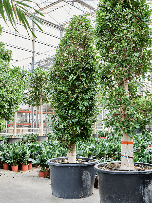 Die Pflege von Ficus microcarpa 'Nitida' erfordert einen gut durchlässigen Boden und ausreichend Sonnenlicht. Sie kann aber auch im Halbschatten wachsen. Diese Art verträgt Trockenheit und Nährstoffmangel gut, reagiert aber positiv auf eine regelmäßige Düngung. Der Baum kann beschnitten werden, um die gewünschte Form und Größe zu erhalten, da er sich leicht an enge Räume und begrenzte Bodenvolumina anpassen lässt. Es ist wichtig, den Boden mäßig feucht zu halten, aber eine Überwässerung sollte vermieden werden, um Wurzelfäule zu vermeiden.