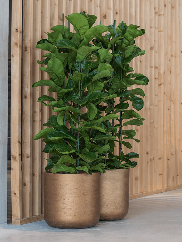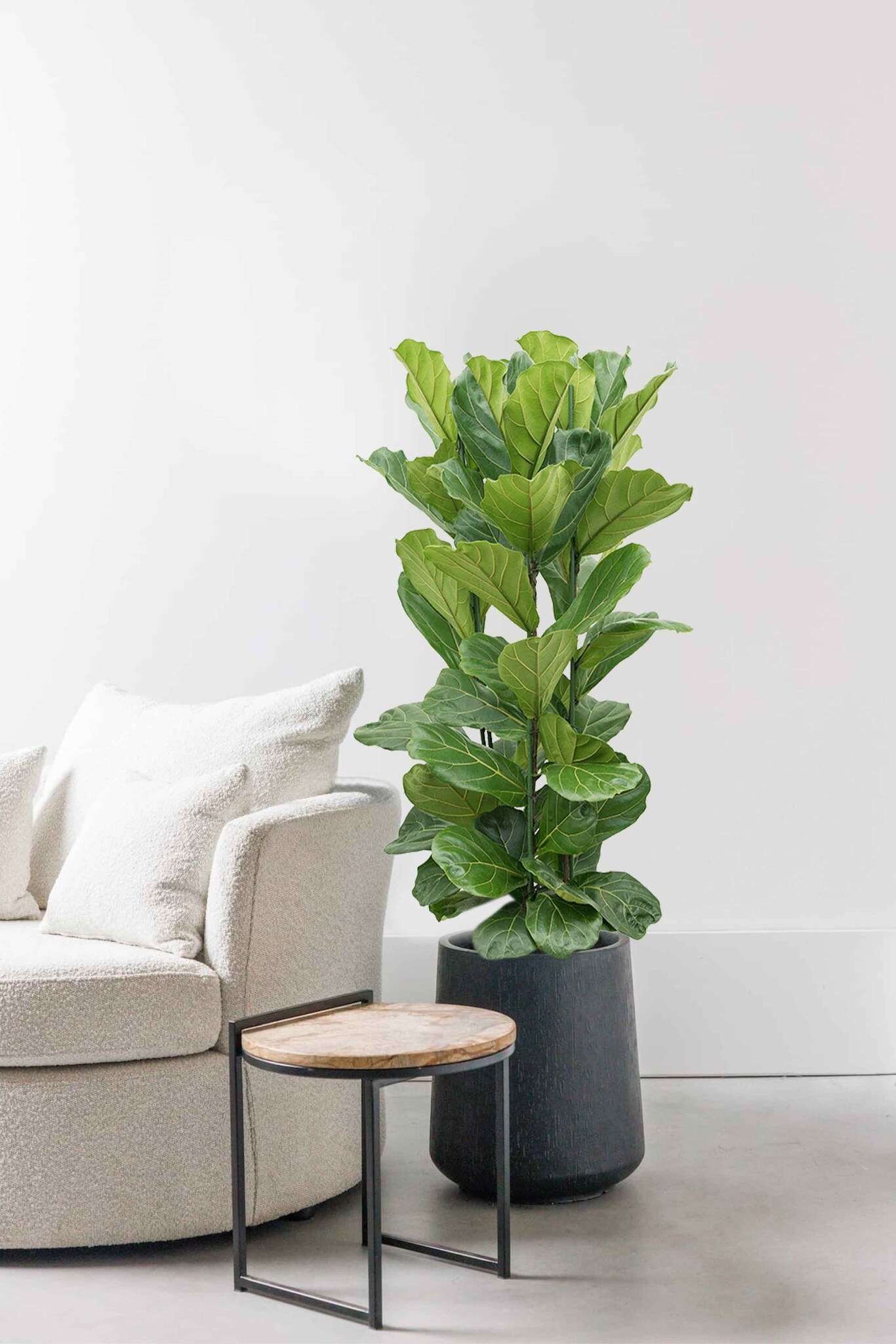 Da der Ficus Lyrata beim Züchter in einer sehr hellen Umgebung steht, kann die Pflanze beim Kauf in den Herbst- und Wintermonaten manchmal Blätter verlieren. Der Wechsel vom hellen Gewächshaus ins Wohnzimmer ist dann besonders groß. Gießen Sie in diesem Fall nicht mehr als normal.