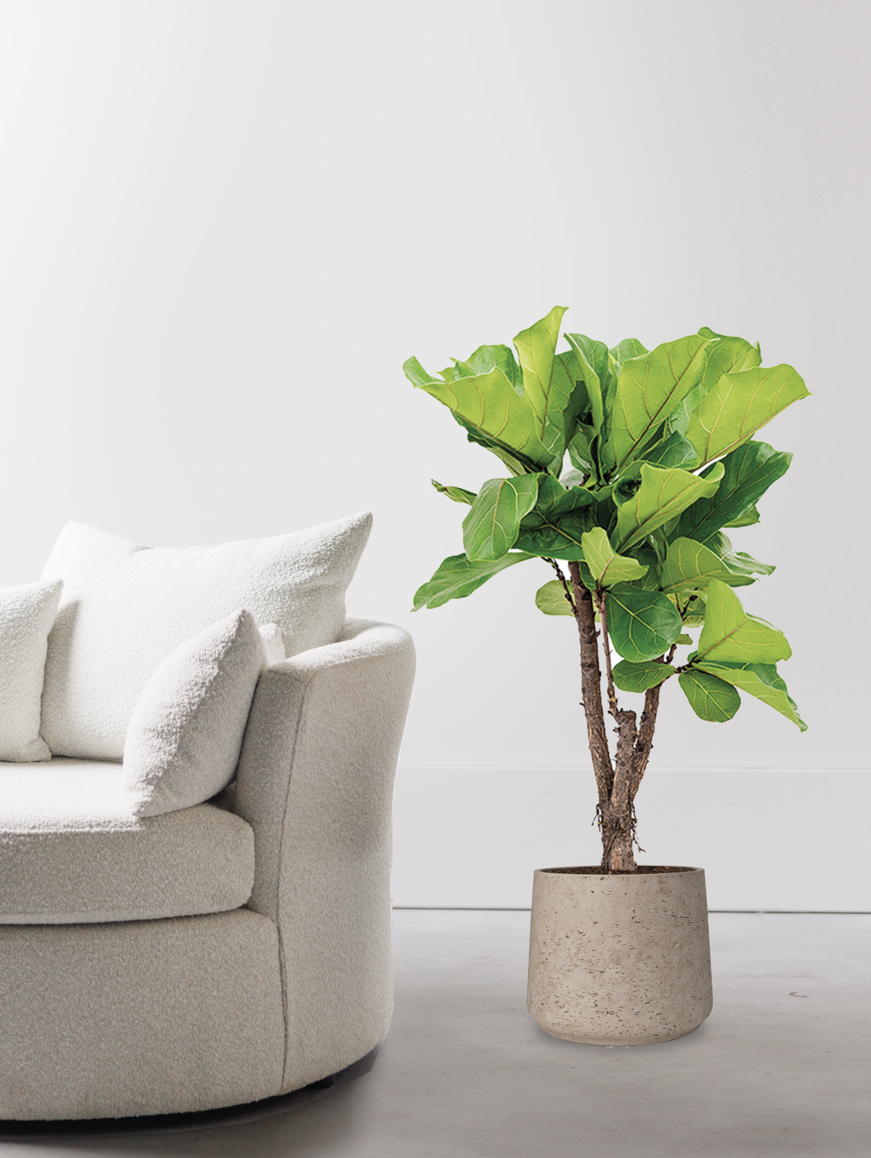 Da der Ficus Lyrata beim Züchter in einer sehr hellen Umgebung steht, kann die Pflanze beim Kauf in den Herbst- und Wintermonaten manchmal Blätter verlieren. Der Wechsel vom hellen Gewächshaus zum Wohnzimmer ist dann besonders groß. Gießen Sie in diesem Fall nicht mehr als normal.