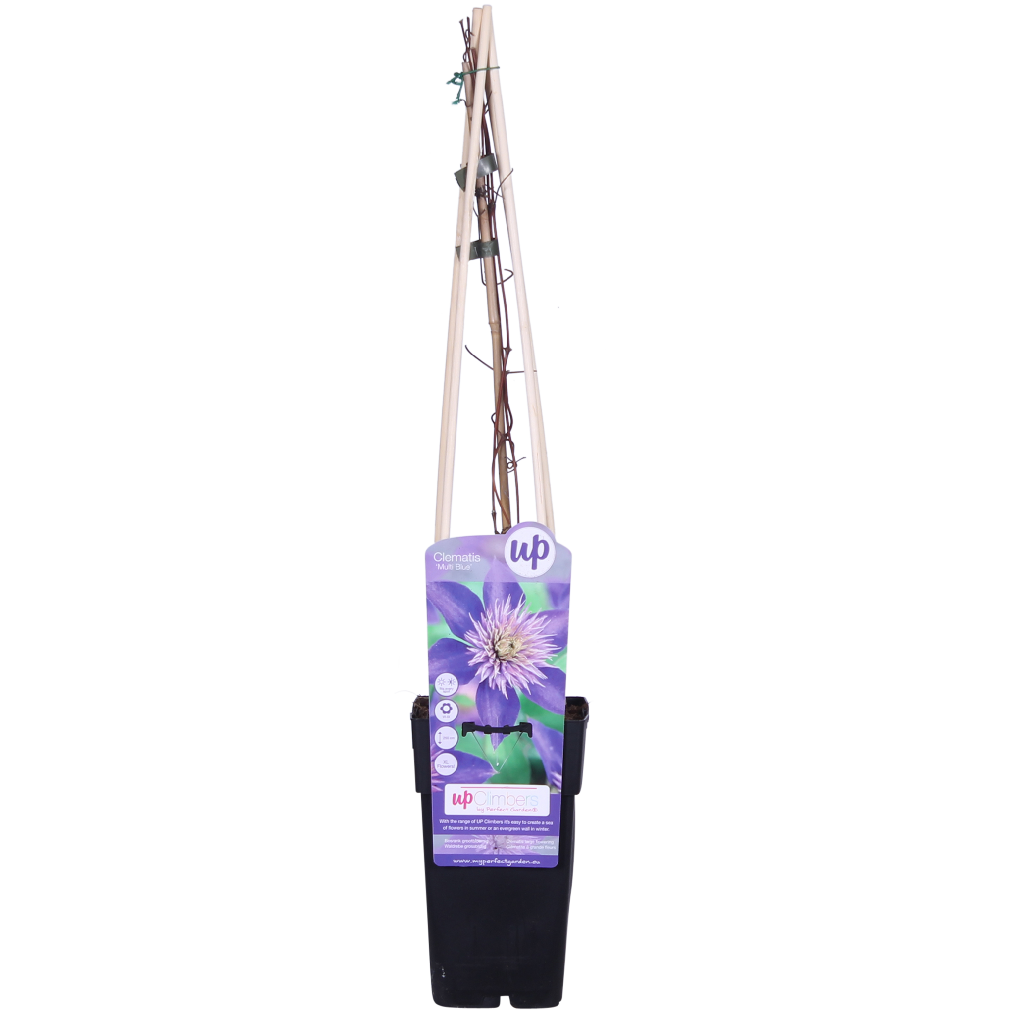 Clematis Multi Blue' gehört zu den Waldrebenarten mit den größten Blüten. Sie blüht zweimal im Jahr, was sie zu einem echten Blickfang im Garten macht. Die erste Blütezeit ist etwa im Mai-Juni mit violettblauen Blüten und die zweite Blütezeit ist zwischen Juli und September. Nachdem 'Clematis Multi Blue' das erste Mal geblüht hat, sollte sie zurückgeschnitten werden, damit sie ein zweites Mal blüht. Die Clematis hat einen gepflegten und kompakten Wuchs und ist daher sowohl für große als auch für kleine Gärten geeignet. Nach einigen Jahren erreicht diese Art eine Höhe von etwa 2 bis 3 Metern. Damit die Clematis besser klettern kann, braucht sie ein wenig Hilfe. Daher ist es am besten, die Pflanze an einem Gestell, einem Draht oder einem Stock nach oben zu führen. Die meisten Kletterpflanzen gedeihen sowohl im Halbschatten als auch in der Sonne sehr gut. Dadurch eignet sich die Clematis für die meisten Standorte in Ihrem Garten - sehr praktisch! Je mehr Sonne, desto üppiger blüht die Clematis. Achten Sie nur darauf, dass die Basis (der Boden) Ihrer Kletterpflanze nicht den ganzen Tag in der vollen Sonne steht. Sie können sie abdecken oder ein wenig tiefer pflanzen.