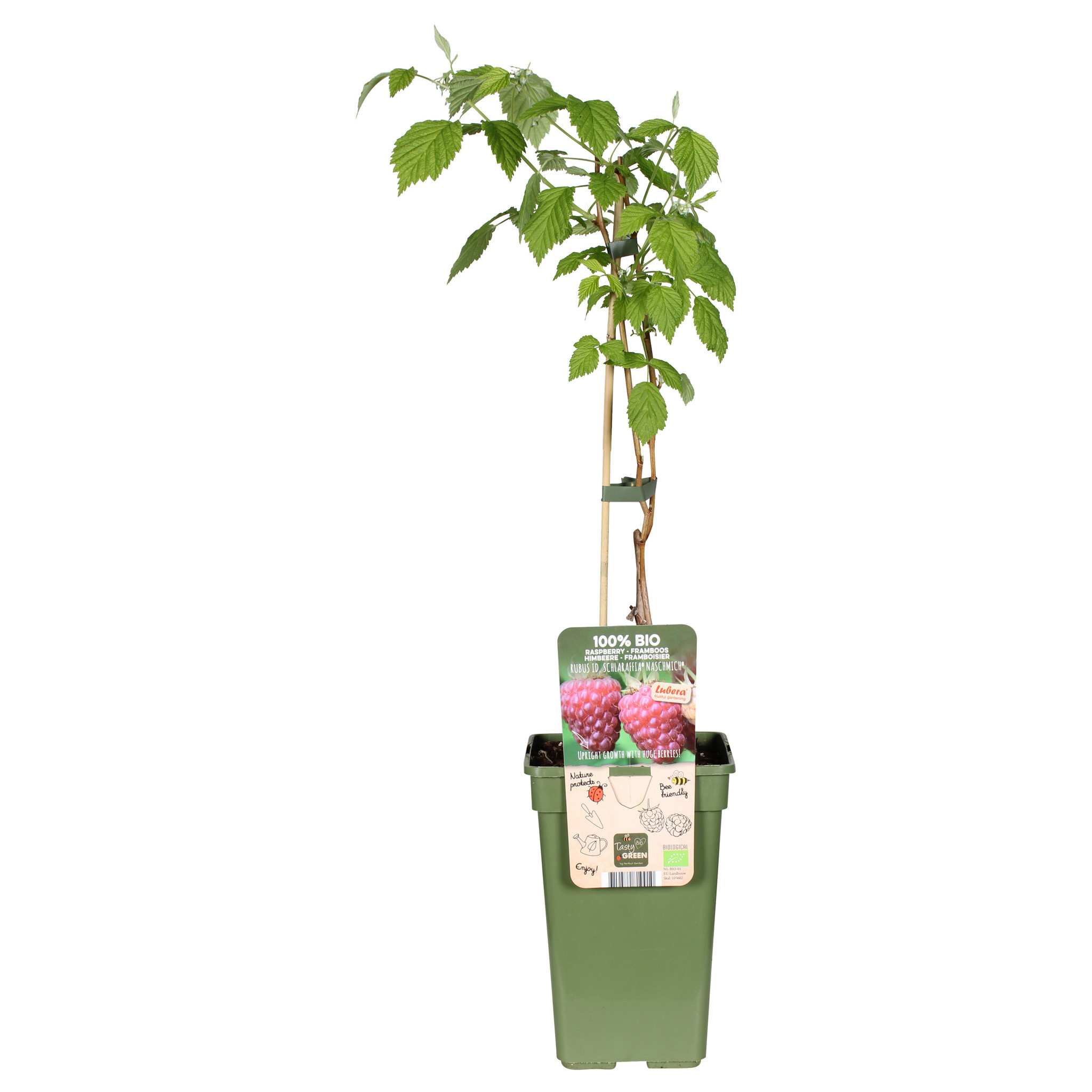 Rubus Idaeus Naschmich' ist eine dornenlose Herbsthimbeere mit großen Früchten, die im Juli und August erntereif sind. In dieser Zeit hat sie bereits im ersten Jahr einen sehr hohen Ertrag. Die Himbeeren sind groß, schön dunkelrot gefärbt und haben einen süß-säuerlichen Geschmack. Diese Himbeere ist selbstbestäubend und blüht im April mit unauffälligen, kleinen weiß-rosa Blüten, die Bienen und Hummeln anlocken. Nach der Blüte entwickeln sich die Himbeeren. Sie können direkt vom Strauch gegessen werden, aber man kann auch köstliche Marmelade und Saft aus ihnen machen. Lassen Sie die reifen Früchte nicht zu lange am Strauch hängen, da sie sonst ihren köstlichen Geschmack verlieren. Himbeeren sind im Handel oft sehr teuer, deshalb macht es viel mehr Spaß, sie selbst anzubauen! Bei Himbeeren wird im ersten Jahr nur ein Zweig gebildet, an dem im folgenden Jahr Früchte wachsen. Nach der Ernte können daher die Zweige, die Früchte getragen haben, bodennah abgeschnitten werden. Die jungen Zweige blühen im folgenden Jahr und tragen dann Früchte. Die Himbeere braucht Unterstützung, um gut zu wachsen, daher sollte sie immer an einem Klettergerüst stehen. Außerdem mag sie einen sonnigen Standort und einen humusreichen, leicht sauren Boden.