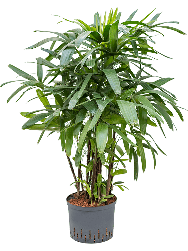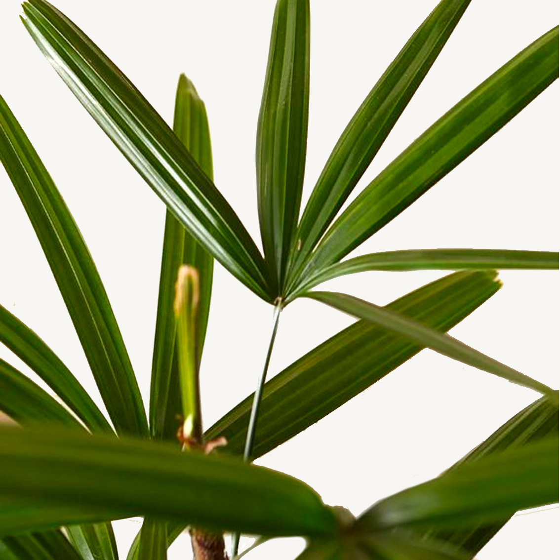 Die Rhapis ist ein luftreinigender Blickfang und darüber hinaus auch noch pflegeleicht. Die Rhapis wird auch Bambuspalme genannt, da ihre Stämme stark an Bambus erinnern. Die dickeren Stämme sorgen nicht nur für zusätzliche Stabilität, sondern bilden mit ihrer braunen Farbe auch einen schönen Kontrast zu den grünen Blättern.