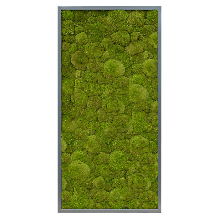 Dieses Gemälde besteht zu 50 % aus Flachmoos und zu 50 % aus Kugelmoos, was das Gemälde noch lebendiger macht. Darüber hinaus können Sie aus vier verschiedenen Rahmen wählen: Naturecast, Raw Grey, Natural und Rock.