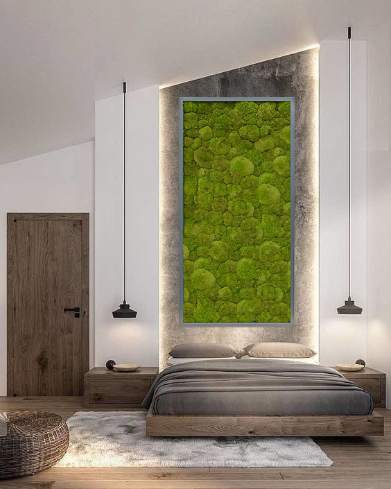 Dieses einzigartige, mit Moos bedeckte grüne Gemälde ist eine Augenweide. Darüber hinaus erfordert es, wie ein gewöhnliches Gemälde, nach dem Aufhängen keinen weiteren Aufwand. Sie müssen das Gemälde nicht befeuchten, da es mit mumifiziertem Moos bedeckt ist. Dabei handelt es sich um echtes, natürliches Moos, dessen Feuchtigkeit durch eine umweltfreundliche und biologisch abbaubare Präparationsflüssigkeit ersetzt wurde. Indem das Moos diese Flüssigkeit aufnimmt, bleibt es lange Zeit erhalten und behält sein natürliches Aussehen und seine Farbe.