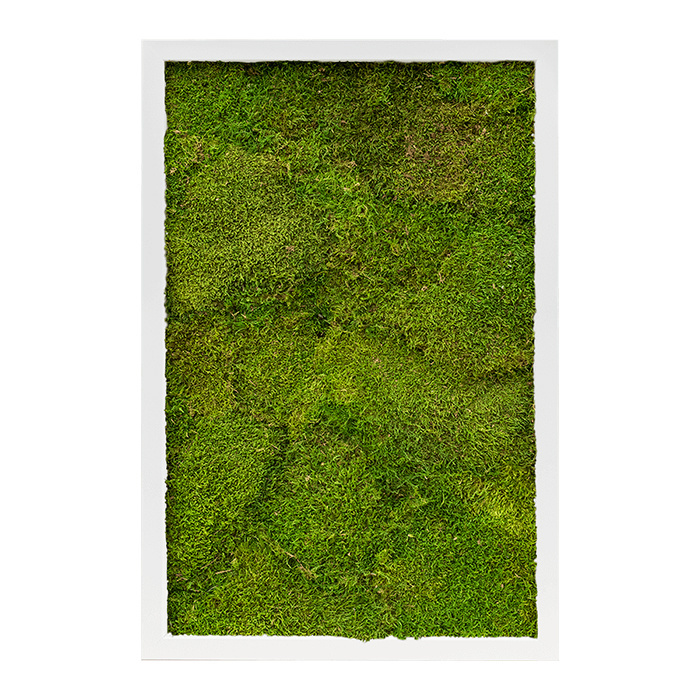 Dieses Gemälde besteht zu 50 % aus Flachmoos und zu 50 % aus Kugelmoos, was das Gemälde noch lebendiger macht. Darüber hinaus können Sie aus vier verschiedenen Rahmen wählen: Naturecast, Raw Grey, Natural und Rock.
