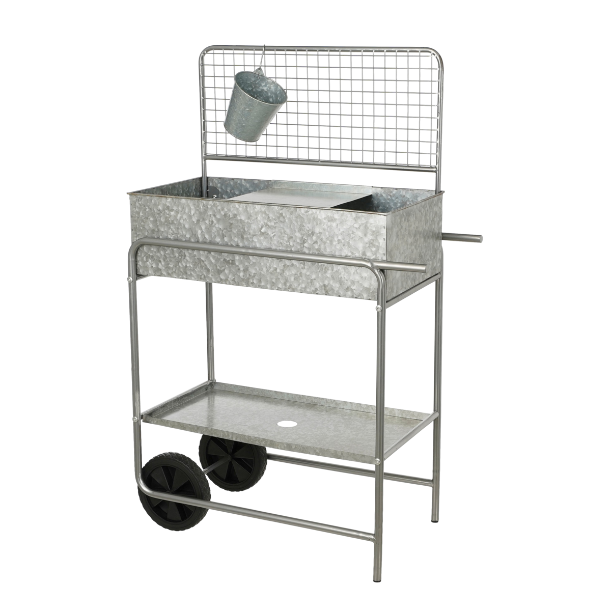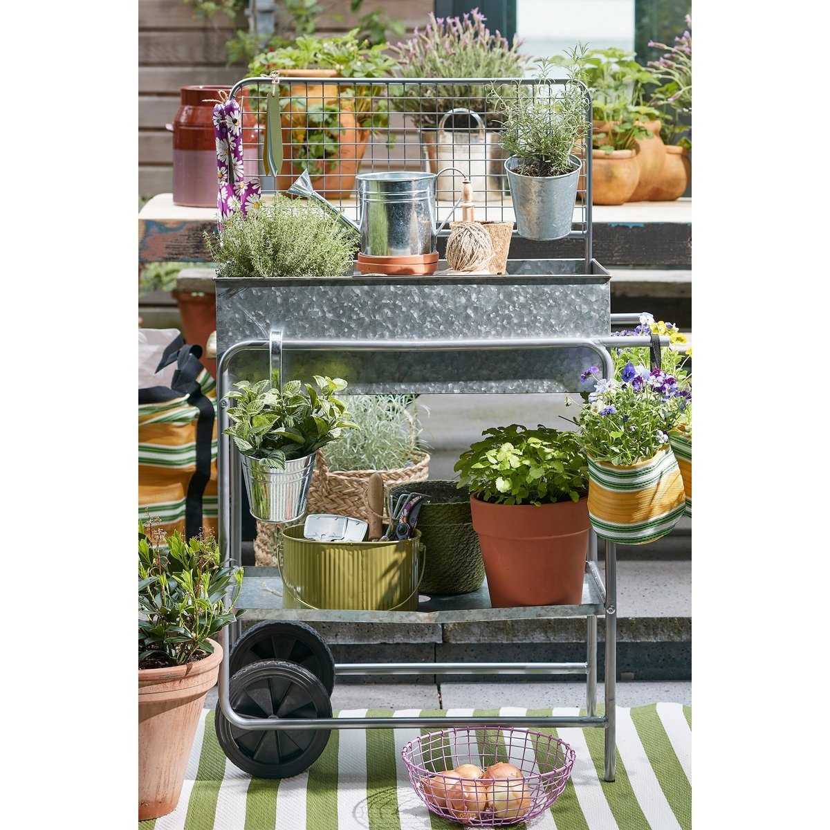 Bauen Sie jetzt Ihr eigenes Gemüse oder Obst auf Ihrem Balkon, Ihrer Terrasse oder in Ihrem Garten an - mit diesem Anbautisch Ken von Mica Decorations. Der aus robustem verzinktem Stahlblech gefertigte Anzuchttisch ist ideal für den Anbau von Kräutern, Gemüse oder Obst. Der Outdoor-Tisch ist mit Rädern ausgestattet, so dass Sie ihn leicht an einen sonnigen Platz stellen können. Außerdem verfügt der Anbautisch über eine Arbeitsfläche und ein Gitter zum Aufhängen von Gartengeräten wie einer Handschaufel oder einem Handrechen. Praktisch! Der Boden hat ein Abflussloch, damit überschüssiges Wasser, z.B. nach einem starken Regenschauer, mühelos abfließen kann. Der Anzuchttisch hat eine ideale Arbeitshöhe von 85 cm und misst L77 x B38 x H119 cm. Hinweis: Dieser Anzuchttisch aus verzinktem Stahlblech ist wetterfest, kann aber mit der Zeit verwittern.