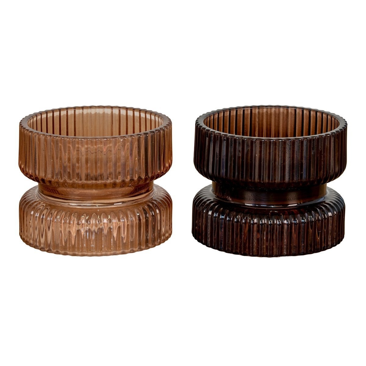 Kerzenhalter – Bernstein/Braunes Glas, Ø 9 x 7 cm – 2er-Set