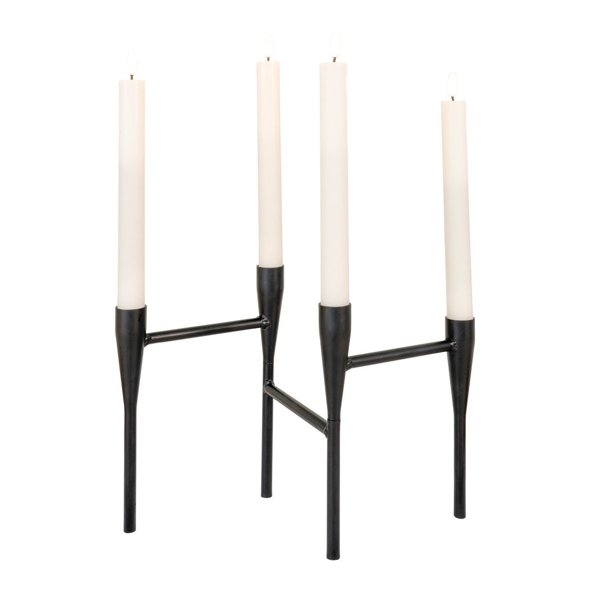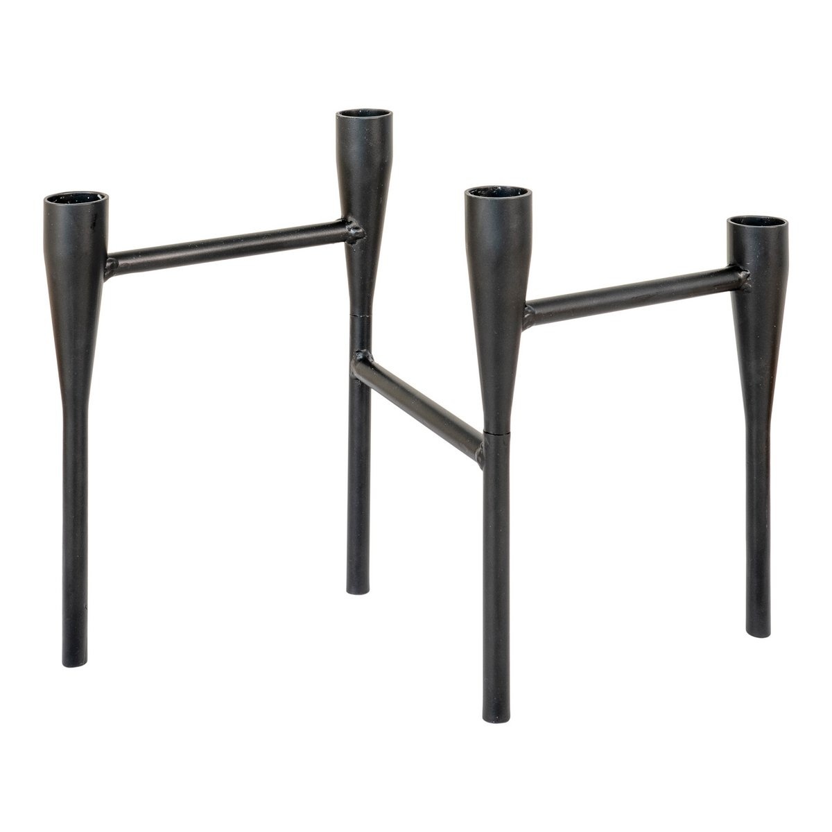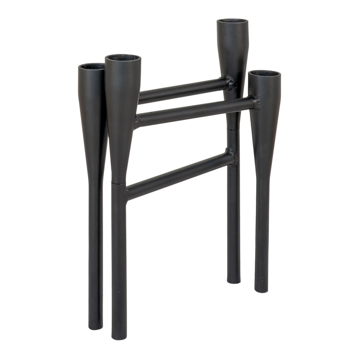 Dieser Kerzenhalter ist aus schwarzem Stahl gefertigt und verfügt über ein modernes, geometrisches Design mit mehreren Kerzenhaltern. Er stellt einen auffälligen Blickfang für jeden Tisch oder Kaminsims dar.