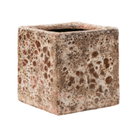 Die Lava-Kollektion zeichnet sich durch eine skurrile Oberfläche aus, die durch eine spezielle Technik, die wir "Scratch Off" nennen, entsteht. Jedes Produkt ist einzigartig und keins ist wie das andere. Die Kollektion für den Innenbereich ist wasserdicht und verfügt über Anti-Kratz-Filze an der Unterseite. Die Outdoor-Kollektion verfügt über ein Loch im Boden, durch das überschüssiges Wasser abfließen kann.
