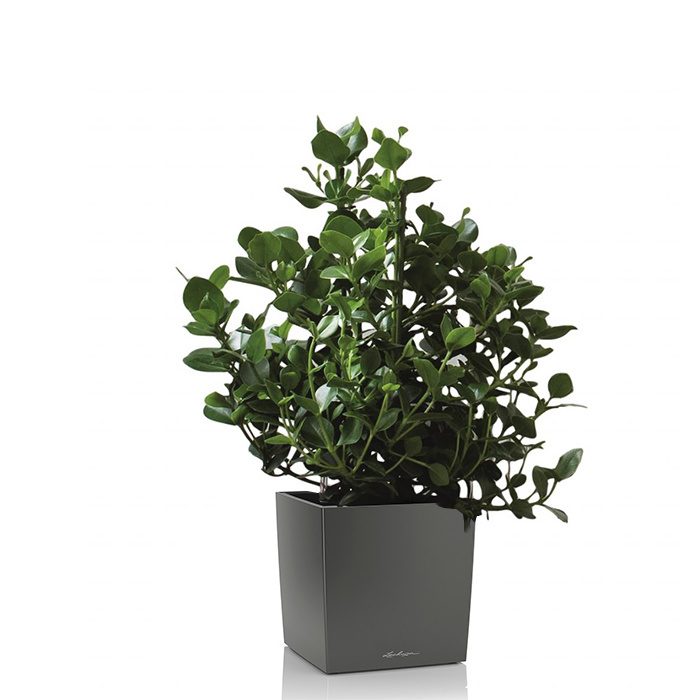 Die Lechuza-Blumentöpfe sind aus hochwertigem Kunststoff gefertigt und die Pflanzen werden durch ein fortschrittliches Bewässerungssystem optimal mit Wasser versorgt. Dadurch kann es nicht vorkommen, dass Sie die Pflanze zu viel oder zu wenig gießen. Anhand eines praktischen Wasserzählers können Sie leicht erkennen, wann der Vorratsbehälter nachgefüllt werden muss, was besonders im Büro von Vorteil ist. Darüber hinaus stellen wir die Pflanze kostenlos mit dem Lechuza-Blumentopf bereit.