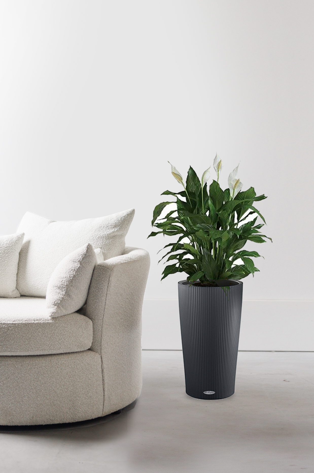 Die Lechuza-Blumentöpfe sind aus hochwertigem Kunststoff gefertigt und die Pflanzen werden durch ein fortschrittliches Bewässerungssystem optimal mit Wasser versorgt. So können Sie die Pflanze niemals zu viel oder zu wenig gießen. Anhand eines praktischen Wasserzählers können Sie leicht erkennen, wann der Behälter nachgefüllt werden muss, was besonders im Büro von Vorteil ist. Darüber hinaus bepflanzen wir die Pflanze kostenlos mit dem Lechuza-Blumentopf.