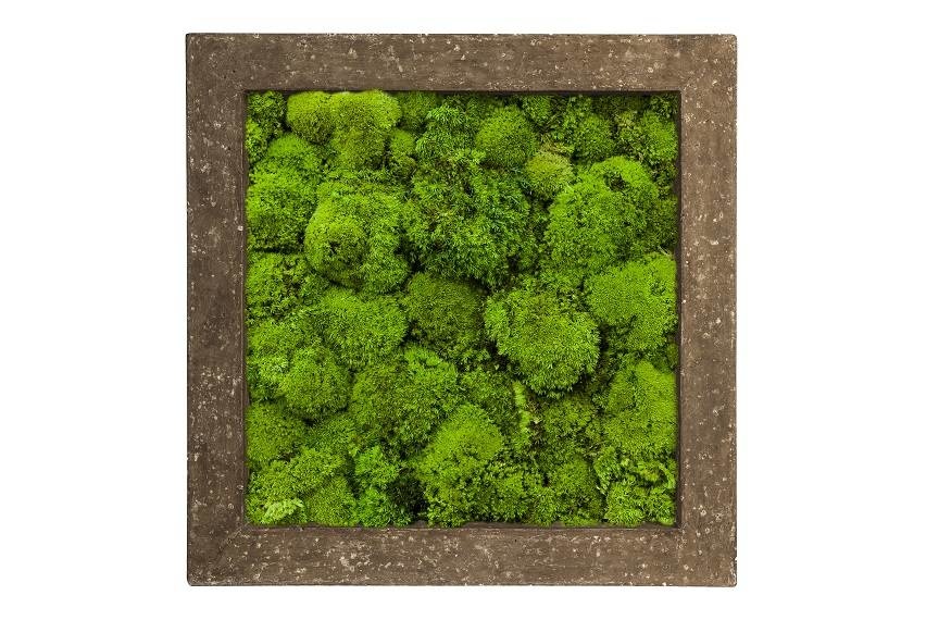 Dieses Bild besteht zu 50 % aus Flachmoos und zu 50 % aus Kugelmoos, was das Bild noch lebendiger macht. Sie können auch zwischen vier verschiedenen Rahmen wählen: Naturecast, Raw Grey, Natural und Rock.