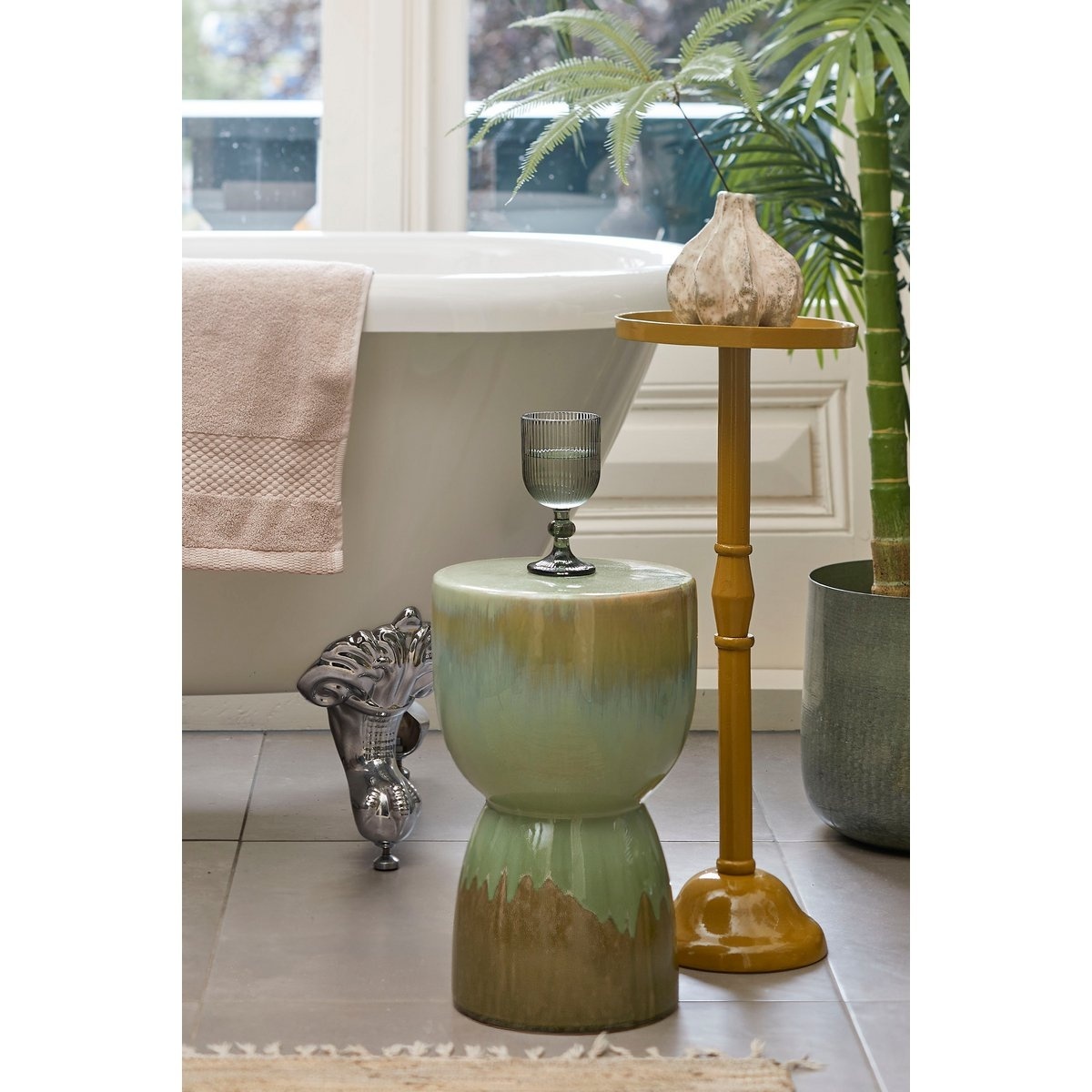 Verleihen Sie Ihrer Einrichtung einen farbenfrohen Touch mit diesem Lucien Beistelltisch von Mica Decorations. Der Tisch ist aus hochwertiger Keramik gefertigt und hat eine schöne glasierte Oberfläche in verschiedenen Grüntönen. Er macht sich gut neben oder vor einer Sitzgelegenheit, aber auch im Flur mit einer schönen Pflanze darauf. Der Tisch hat eine Höhe von 37 cm und einen Durchmesser von 25,5 cm. Wo werden Sie ihn platzieren?