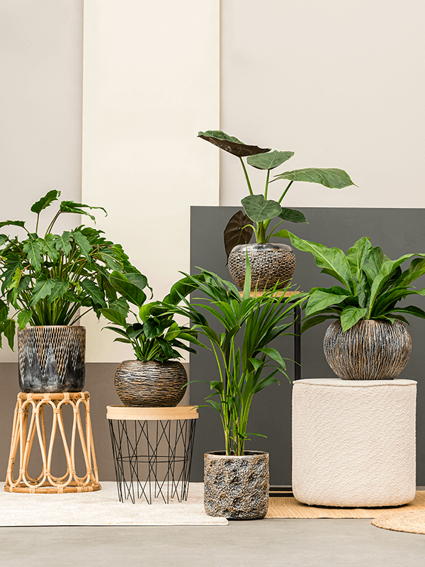 Onze basis opmaak bestaat uit semi hydro, dat betekent dat wij vanaf een potmaat van 20 centimeter en groter, de planten rondom de kwekersaarde afstrooien met hydrokorrels. Hierbij heeft u als extra keuze om een watermeter toe te voegen en of u de bovenkant van de pot wilt laten afstrooien met houtsnippers.