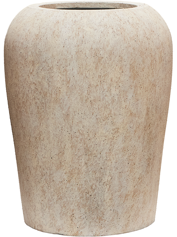Die Mineral-Kollektion besteht aus Pflanzgefäßen mit einer besonderen Oberflächenstruktur, die an Travertin erinnert. Dieses Pflanzgefäß ist aus Ficonstone gefertigt, einer Mischung aus Zement, Sand und Glasfaser, und somit ein robustes Material. Das Pflanzgefäß ist UV-beständig, wodurch es vor Verfärbungen und Beschädigungen durch Sonnenlicht geschützt ist. Da das Pflanzgefäß frostbeständig ist, kann es in kalten Perioden draußen stehen bleiben, ohne Schaden zu nehmen.