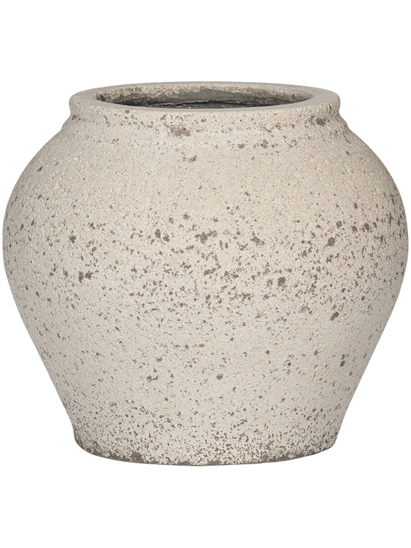 Der Pflanzkübel der Marke Pottery Pots aus der Mediterranean Kollektion ist aus Ficonstone gefertigt, einer Mischung aus Zement, Sand und Glasfaser, und somit ein robustes Material. Die raue Struktur verleiht dem Kübel ein robustes Aussehen, geeignet für den Außenbereich. Dieser Pflanzkübel ist frostbeständig, sodass er während kalter Perioden draußen stehen bleiben kann, ohne beschädigt zu werden. Zudem ist der Kübel UV-beständig; dadurch ist der Pflanzkübel vor Verfärbung und Beschädigung durch Sonnenlicht geschützt. Im Boden befindet sich ein Abflussloch, um überschüssiges Wasser abzuleiten.
