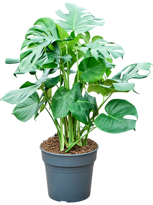 Die Monstera steht in Blumenerde und ist pflegeleicht. Regelmäßiges Gießen und gelegentliches Düngen halten die Pflanze gesund und kräftig. Da die Monstera Deliciosa nicht blüht, behält sie das ganze Jahr über ihre vollen und gesunden Blätter und ist somit eine konstante Quelle frischer Ausstrahlung.