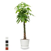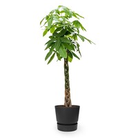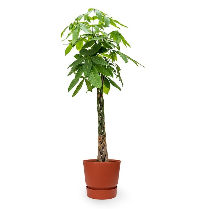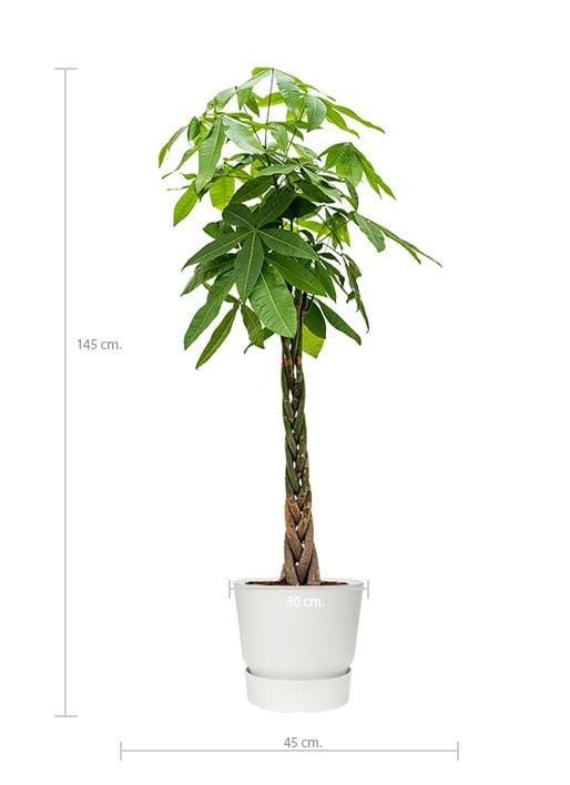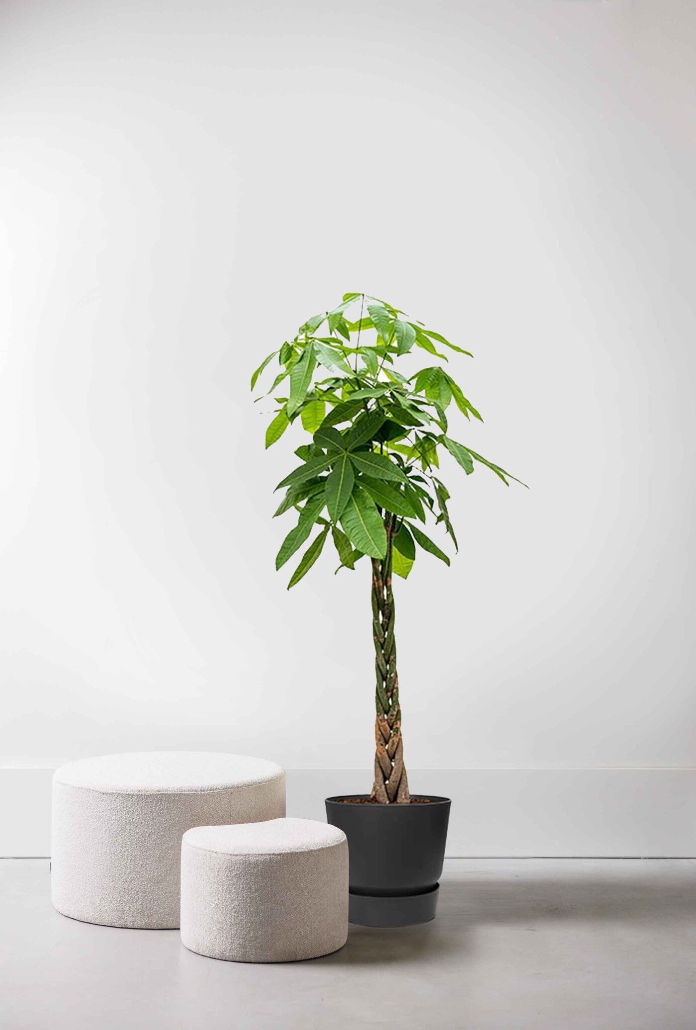 Der Pachira, in China auch Geldbaum genannt. Und steht dort für Glück und Reichtum. Dieser Baum hat seinen Ursprung an südamerikanischen Flussufern. Obwohl man meinen könnte, dass diese Pflanze deshalb viel Wasser braucht, ist es genau das Gegenteil. Diese Pflanze braucht sehr wenig Wasser und ist daher recht pflegeleicht.