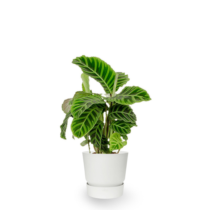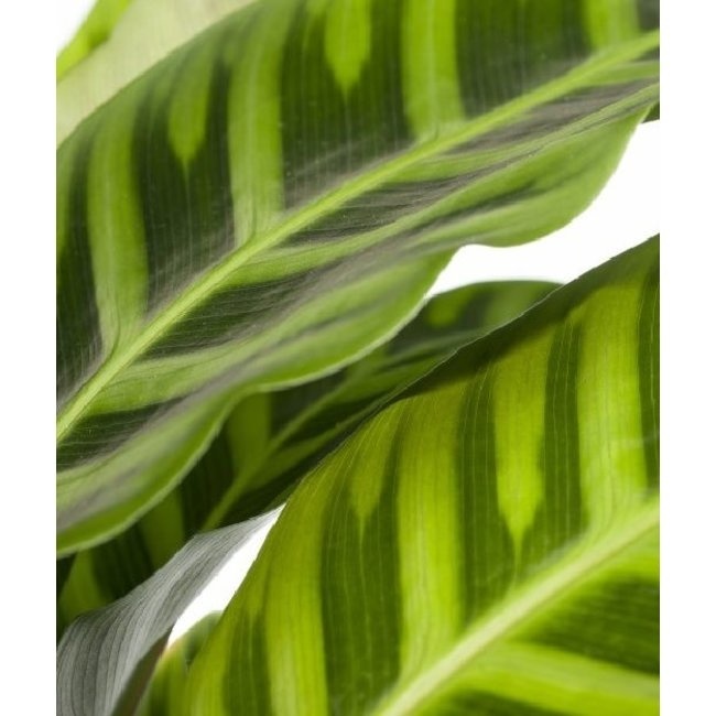 Die Calathea ist bekannt für ihre besonderen gestreiften und farbigen Blätter. Die schönen Muster auf den Blättern sorgen für einen besonderen und auffälligen Look. Wenn Sie etwas Besonderes in Ihrem Zuhause schätzen, ist die Calathea eine gute Wahl. Diese Pflanze passt nicht nur gut in jedes Interieur, sondern reinigt auch die Luft. Seien Sie nicht überrascht, wenn die Pflanze gegen Abend eine andere Haltung einnimmt. Die Blätter schließen sich nämlich gegen Abend.