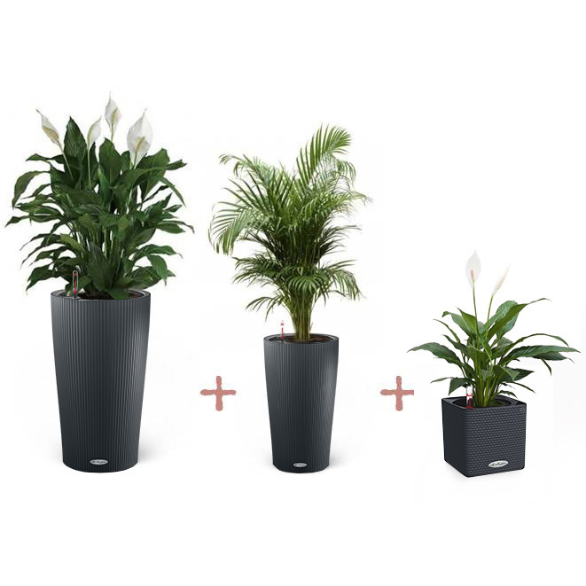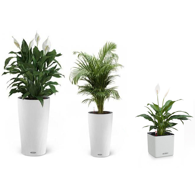 Die Pflanzen in den Lechuza-Blumentöpfen werden durch ein fortschrittliches Bewässerungssystem optimal bewässert. So können Sie die Pflanze niemals zu viel oder zu wenig gießen. Mit Hilfe eines praktischen Wasserzählers können Sie leicht erkennen, wann der Vorratsbehälter nachgefüllt werden muss, was besonders im Büro von Vorteil ist. Darüber hinaus stellen wir die Pflanze kostenlos mit dem Lechuza-Blumentopf bereit.