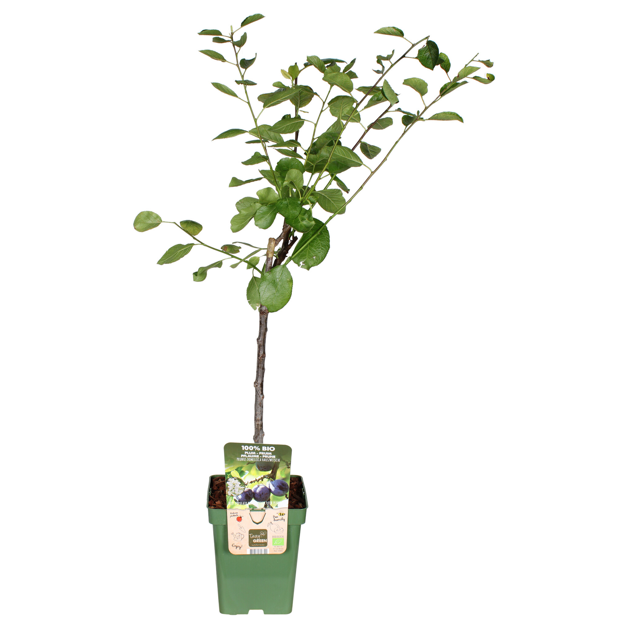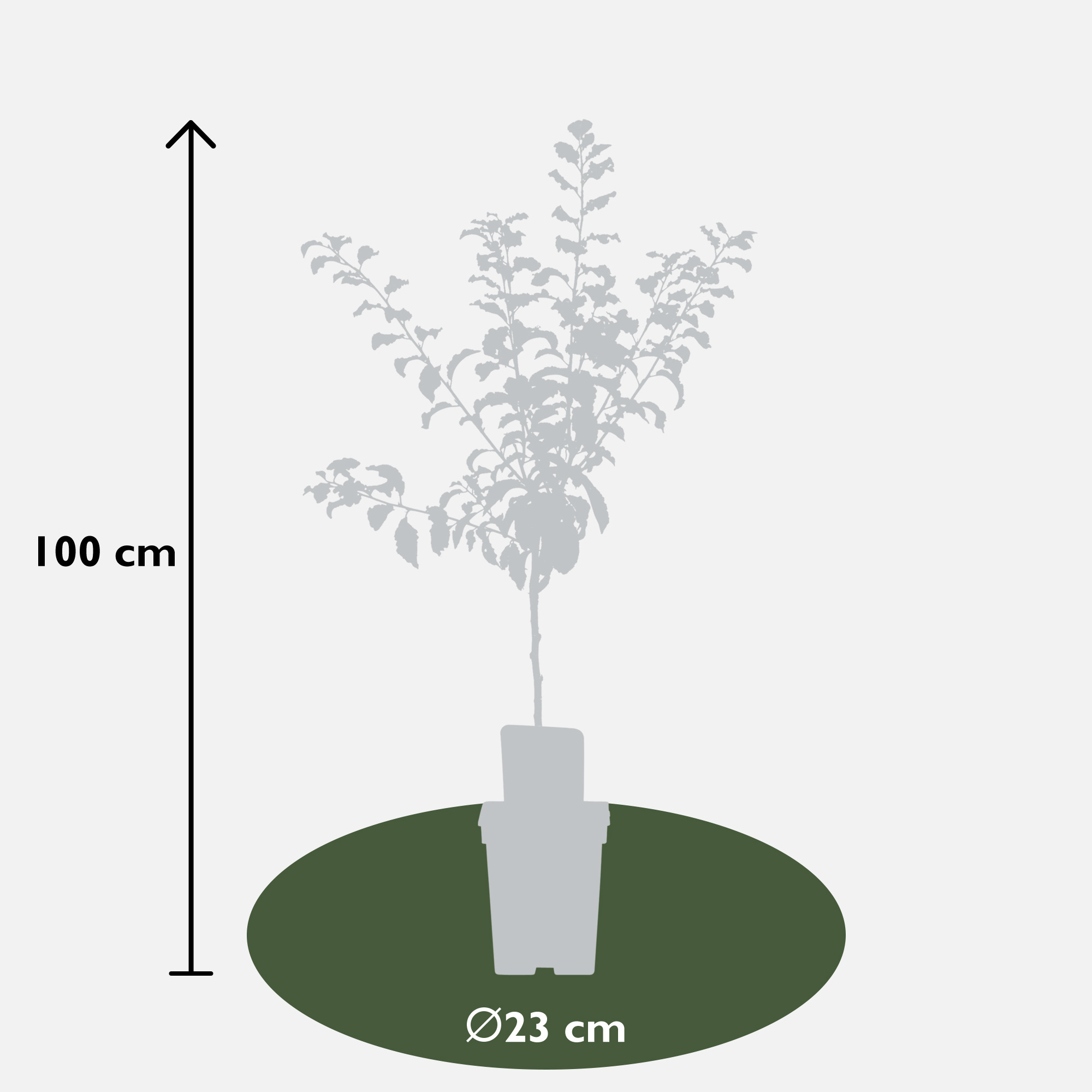 'Prunus Domestica Hauszwetsche' ist ein Pflaumenbaum, der ab Mitte April mit weiß-rosa Blüten blüht. Es handelt sich um eine alte Sorte, die sich selbst bestäuben kann. Wenn andere Obstbäume den Baum bestäuben, erhalten Sie jedoch oft mehr und bessere Früchte. Die dunkelblauen, saftig-süßen Pflaumen können ab September gepflückt werden und werden hauptsächlich als Handpflaume verwendet, eignen sich aber auch für warme Gerichte. Die Pflaume ist nicht nur lecker, sondern auch äußerst gesund. Sie enthalten viele Antioxidantien und sind sehr ballaststoffreich und fördern so einen gesunden Stuhlgang. Der Pflaumenbaum kann zu zwei Zeitpunkten beschnitten werden, im Frühjahr nach der Blüte oder im Herbst nach der Ernte. Schneiden Sie immer an einem relativ warmen und trockenen Tag, um Krankheiten zu vermeiden und genügend ältere Äste für gute Früchte in der neuen Saison zu belassen. Erzeugen Sie am Ende einen offenen Baum mit einer Reihe von Hauptästen, aus denen die Seitenzweige hervorgehen. Alle Früchte, einschließlich Pflaumen, reifen am besten in der Sonne. Geben Sie diesem Obstbaum daher einen möglichst sonnigen Platz im Garten.