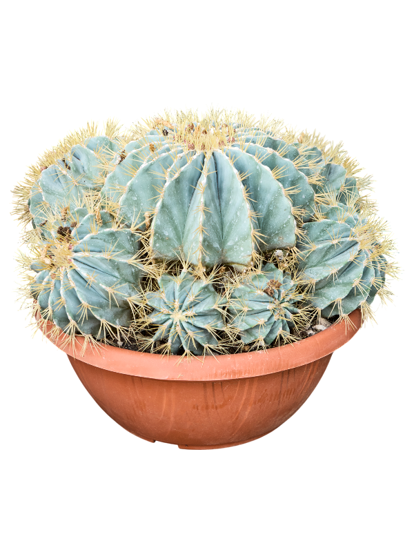 Ferocactus glaucescens, auch bekannt als Blaugrauer Feigenkaktus, stammt ursprünglich aus Mexiko. Diese Art kommt vor allem in den Bundesstaaten Hidalgo und Querétaro vor, wo das trockene, felsige Terrain eine ideale Umgebung für ihr Wachstum bietet. Ferocactus glaucescens gehört zur Familie der Cactaceae, einer der größten Familien unter den Blütenpflanzen.