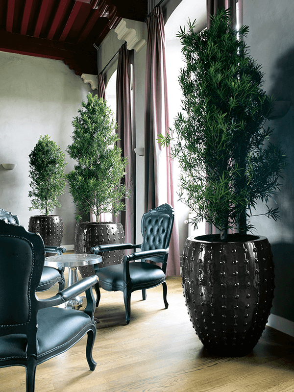 Onze basis opmaak bestaat uit semi hydro, dat betekent dat wij vanaf een potmaat van 20 centimeter en groter, de planten rondom de kwekersaarde afstrooien met hydrokorrels. Hierbij heeft u als extra keuze om een watermeter toe te voegen en of u de bovenkant van de pot wilt laten afstrooien met houtsnippers.