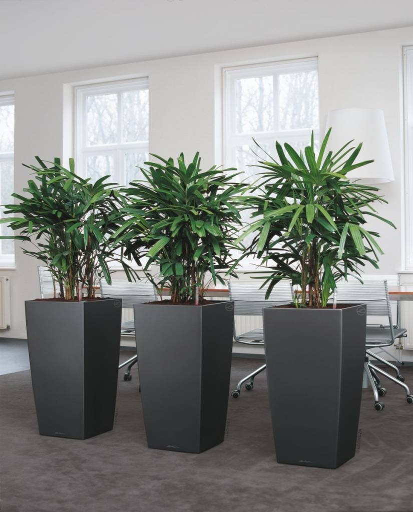 Die Rhapis ist ein luftreinigender Blickfang und darüber hinaus auch noch pflegeleicht. Die Rhapis wird auch Bambuspalme genannt, da ihre Stämme stark an Bambus erinnern. Die dickeren Stämme sorgen nicht nur für zusätzliche Stabilität, sondern bilden mit ihrer braunen Farbe auch einen schönen Kontrast zu den grünen Blättern.