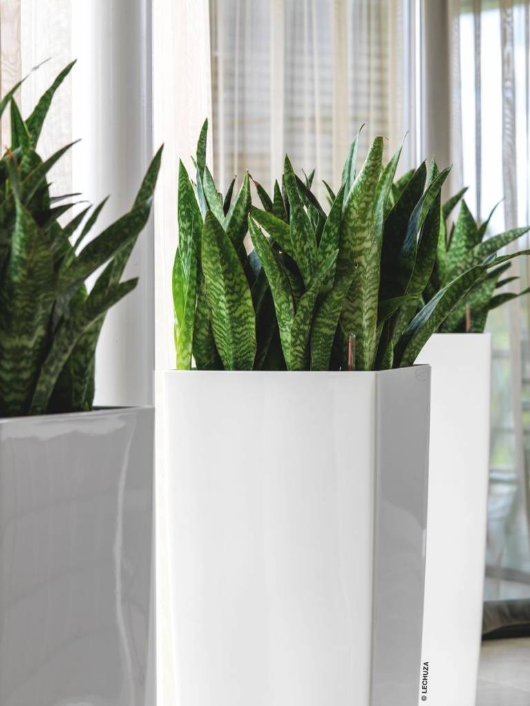 Die Blumentöpfe, in denen die Sansevieria angepflanzt ist, verfügen über ein optimales Bewässerungssystem. Dieses Bewässerungssystem reguliert die Wasserzufuhr zur Pflanze. Dadurch kann es nicht vorkommen, dass Sie die Pflanze zu viel oder zu wenig gießen. Anhand eines praktischen Wasserzählers können Sie leicht erkennen, wann der Behälter nachgefüllt werden muss.